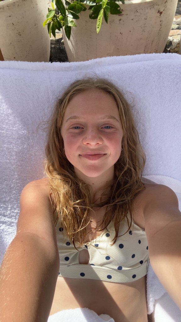 Aujourd’hui, à notre réveil, mom frère et mon père sont allés au gym très tot le matin. Pendant que ma mère et moi étions en train de dormir. Pas trop longtemps après, on est allées les rejoindre à la piscine pour se baigner. Mon frère et moi sommes aussi allés dans l’océan pour à peu près 30 minutes. Plus tard, on est allés au “teen’s club” pour jouer des jeux pendants que mes parents sont allés faire une thérapie du son. On est aussi allé dans la piscine pour ensuite retourner à notre chambre. En soirée, on s’est préparés pour un souper très chic et après le restaurant, on est retourné chez nous pour aller se coucher.