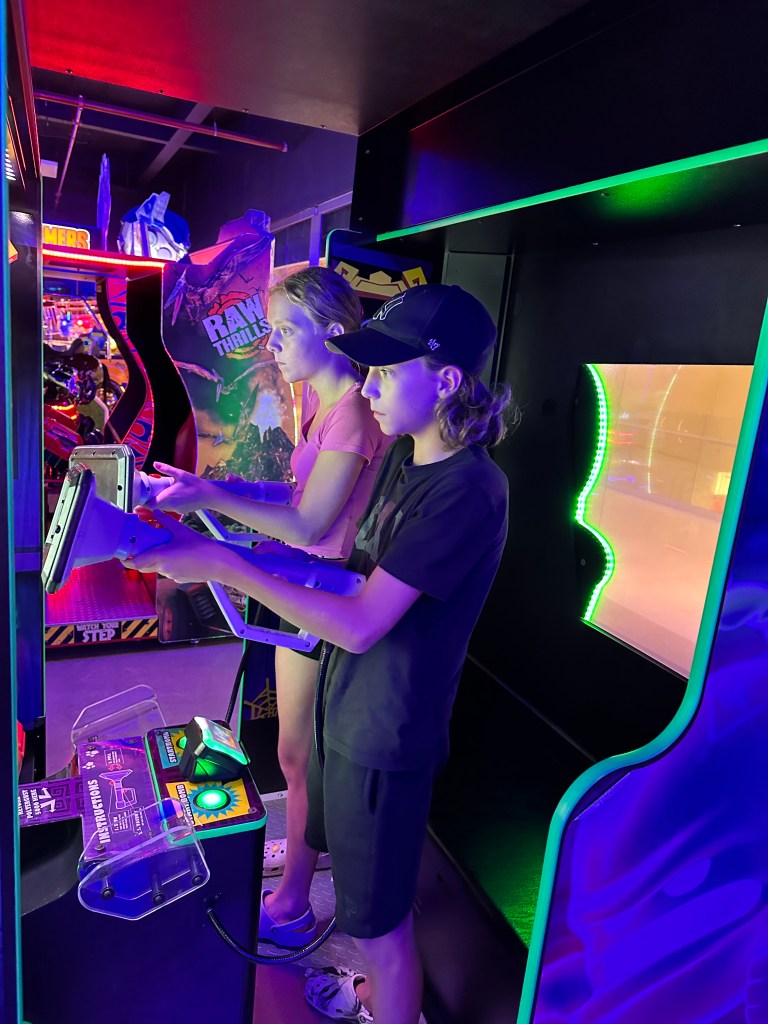 Aujourd’hui, on a packter pour notre hôtel proche de l’aéroport pour demain. C’était chaotique! On a conduit pendant 3h et 30 min. Quand on est arrivé on a retourné l’auto. Ensuite, on est allé explorer au Walmart et au mall. Dans le mall il y avait un arcade où on a joué longtemps et on y a mangé.