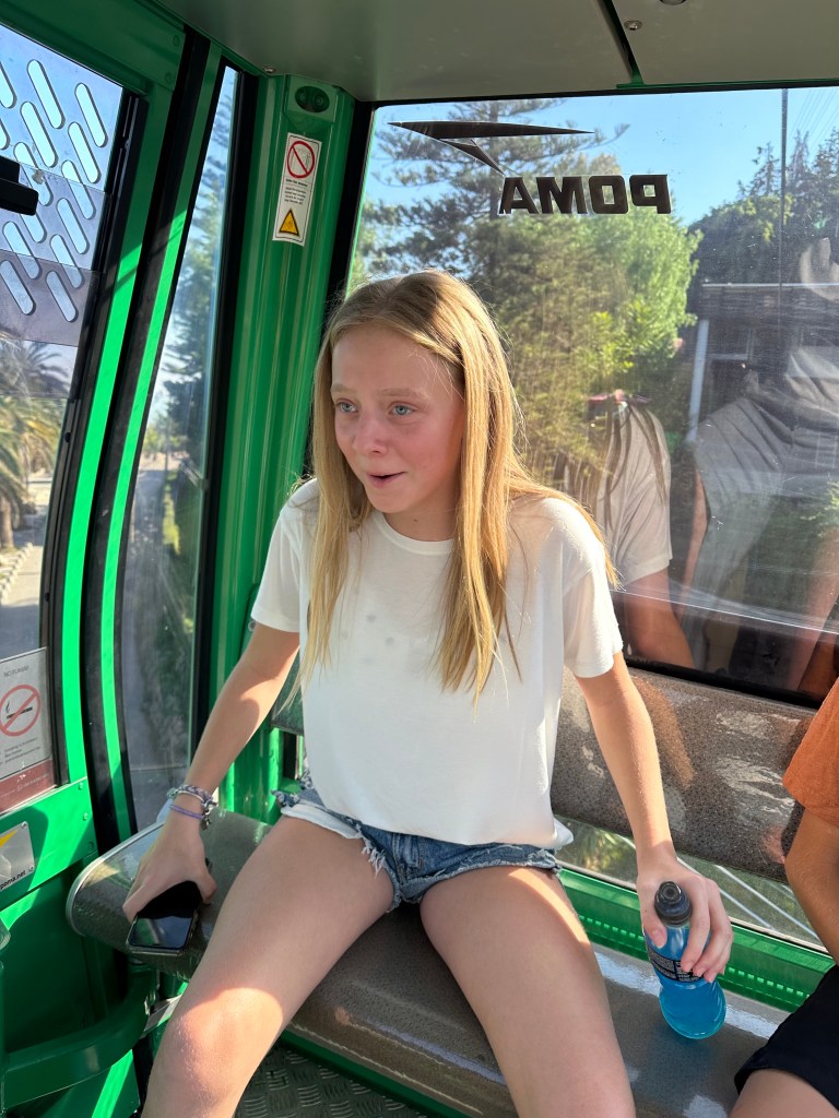 Aujourd’hui, on était supposer aller faire une excursion aux “hot springs”, mais ils ont du annuler car la rue pour s’y rendre s’est brisée sous une pression d’eau. Donc, nous sommes allés faire notre propre découverte. Un chariot à câble et un “chair lift”. Lyvia avait vraiment peur. Ensuite, on est allé manger du “fast food” au centre d’achat. Pour la reste de la soirée, nous sommes retournés à la maison pour jouer au poker. Ma mère et moi avons gagné.