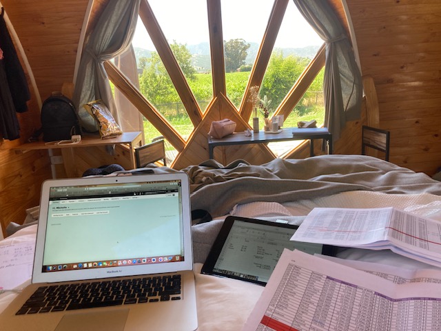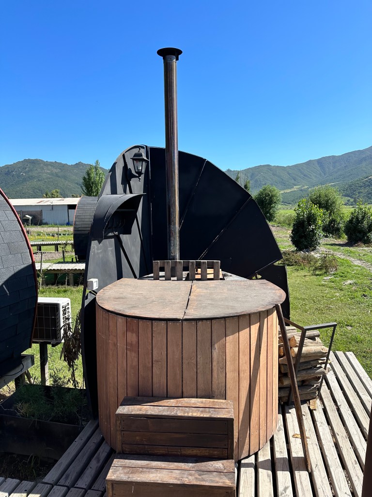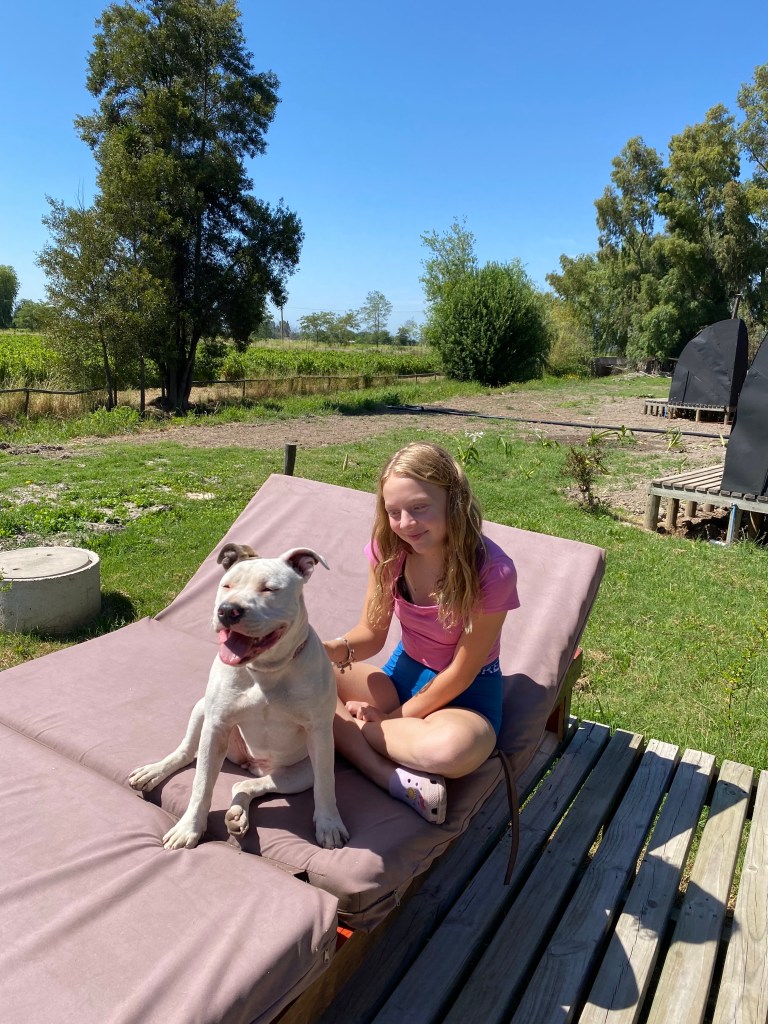 We started the day with a nice breakfast delivered in a pic-nice basket to our door. We all liked it very much. Later, the parents worked while my brother and I explored outside. It was lots of fun and made new friends (dogs). Then we made our way to the restaurant . It had like the best empanadas. Before bed, we spent time in the wood fire hot tub.