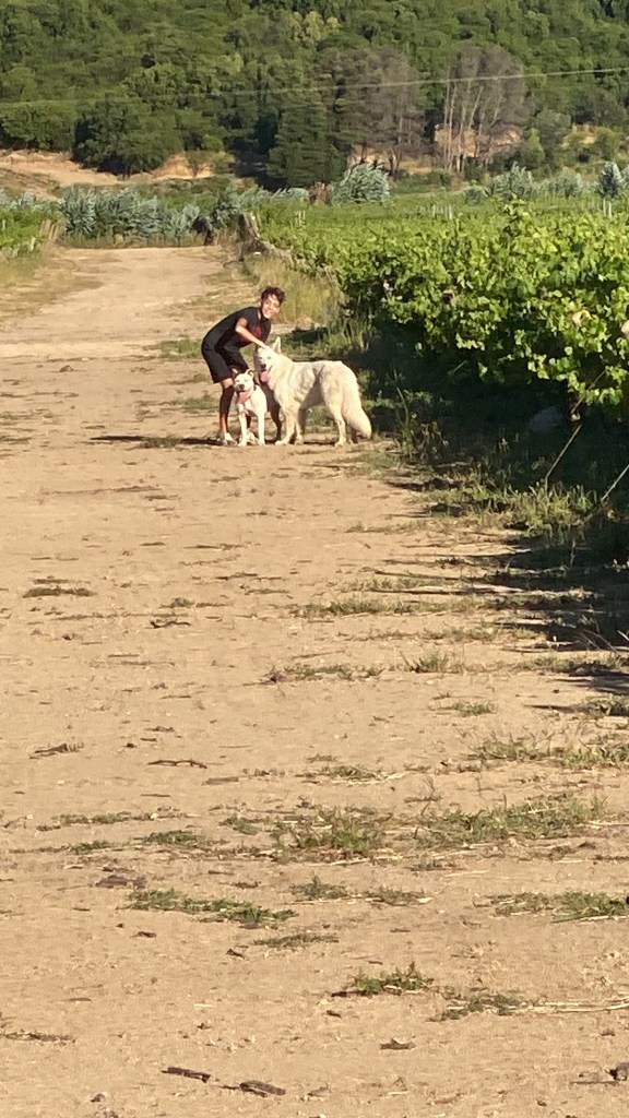 Ce matin, un panier de pique-nique nous attendait à la porte pour déjeuner. En journée, nous nous sommes promené dans les vignobles avance nos nouveaux amis, les chiens du propriétaire. On a manger une charcuterie pour dîner. Lyvia nous a fait un spectacle de danse qui était cool. Ensuite, on a souper au restaurant voisin. Nous avons bien mangé en plein dans le vignoble.