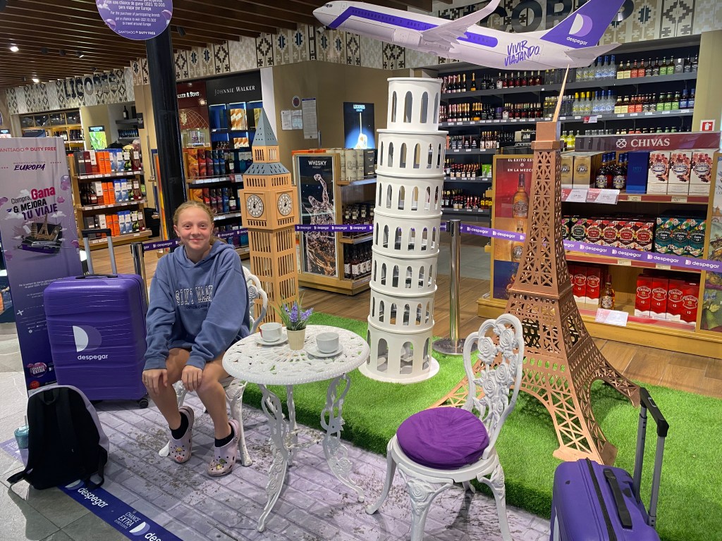Ce matin, on a toute suite commencé à packer pour partir du Chile!! On est allé dîner dans un restaurant en route vers l’aéroport. Encore une fois, on était beaucoup trop tôt pour notre vol. On a eu accès au salon très chic de Latam où on a pu manger de très bon plats autant qu’on voulait. C’était très cool! On se prépare pour un long vol de 13 heures.