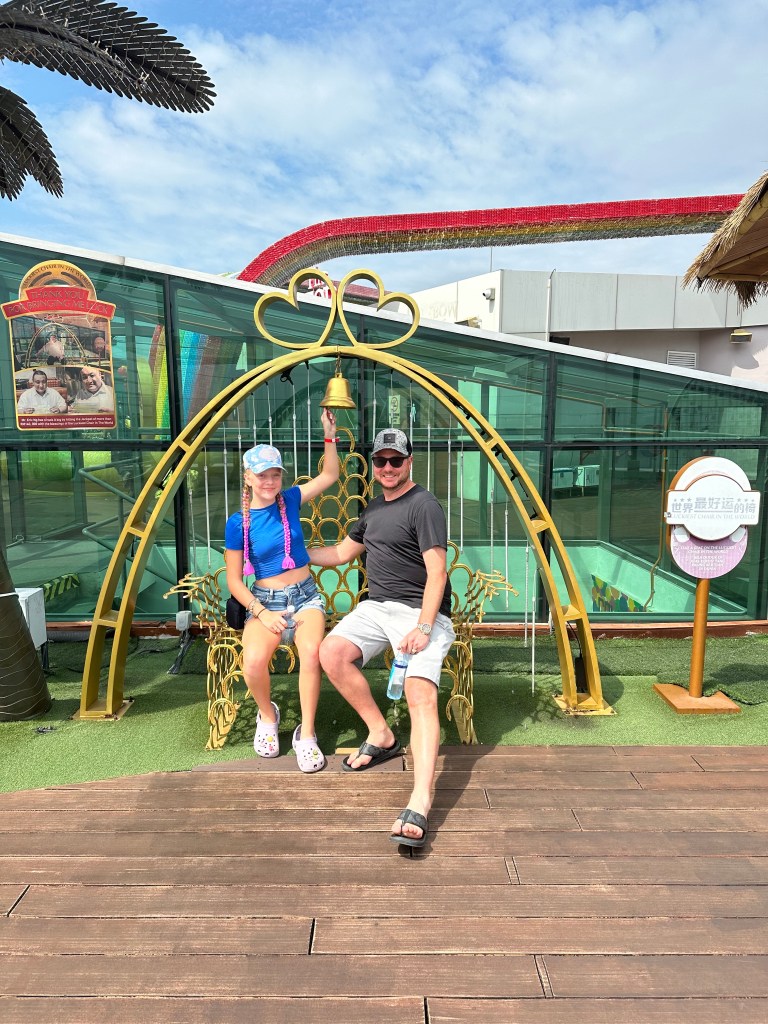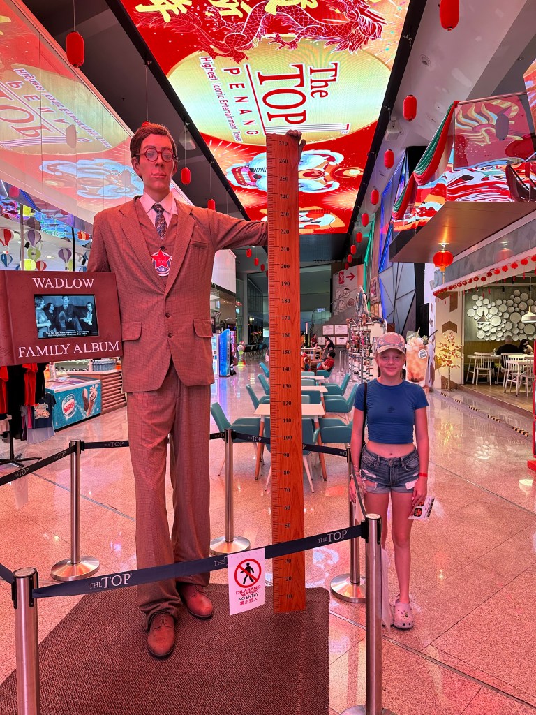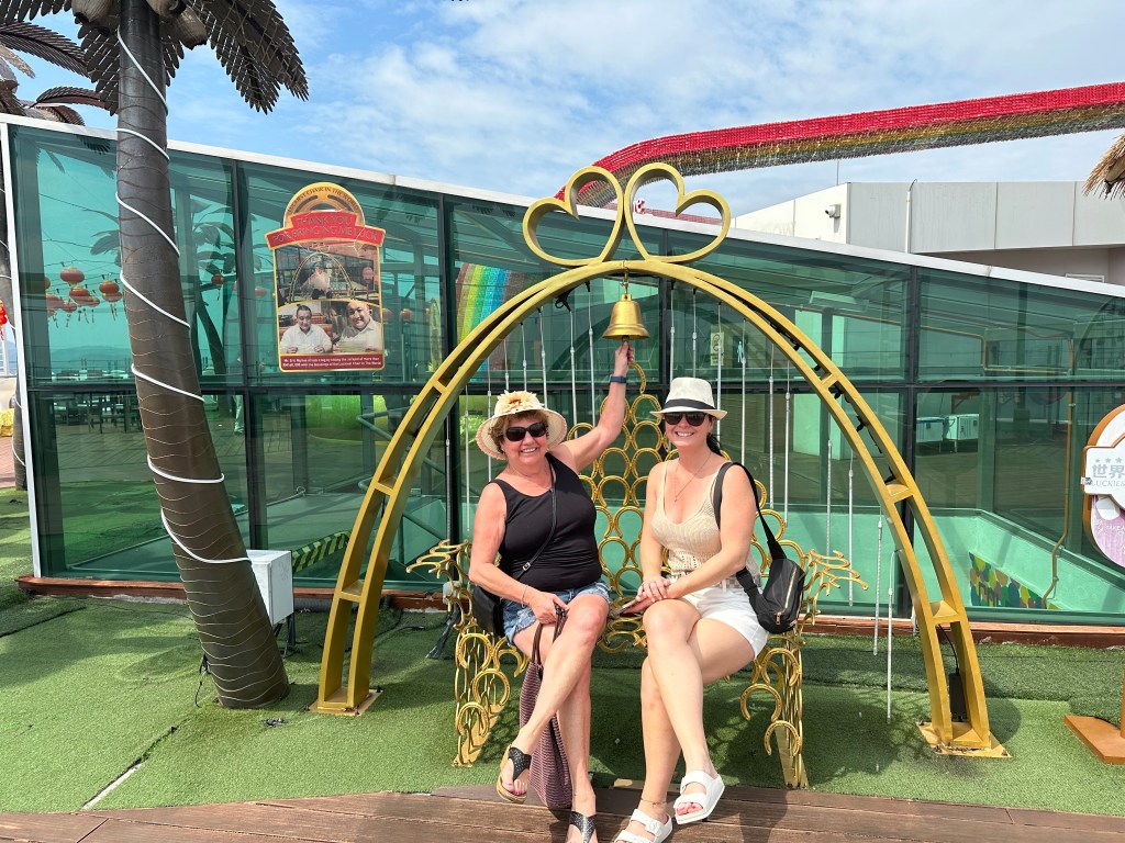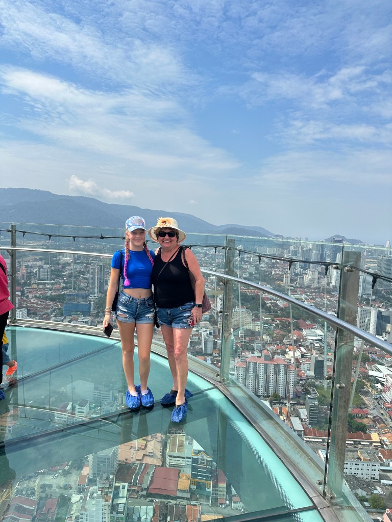 I started the day by eating a breakfast in our room. After, my dad, my grandma, Val and I went out in the port of Panang, Maylasia. We didn’t know what we were going to do but we wanted to explore the city. So first, we walked thru little India (India themed road). It was really cool and we got to see their typical outfits. Later on, we went to a skyscraper called The Top. Once we were at the top, we ate and got to go on a glass bridge!! I was really scared but I did the whole bridge. Then we went back down to this really cool mall. It had lots of cool things like a mirror maze, a haunted house and lots more… but we just decided to shop. I got an electric fan, some hair clips and some malaysian candy. We ended up shopping for an hour. After that, we took a taxi and the driver was 84 years old and he was born during the war 1940! Crazy, he was in very good shape! My parents went for a nice supper on land while the rest of us went to eat at the buffet. Then, it was time for the show, a singing group.