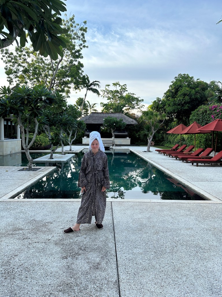 Aujourd’hui, je me suis réveillé très tard donc quand j’ai dû manger des pâtisseries. Ensuite, après le dîner, les parents avaient un massage donc Lyvia et moi sommes retournés à la Villa pour le reste de la journée.