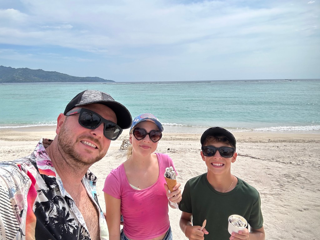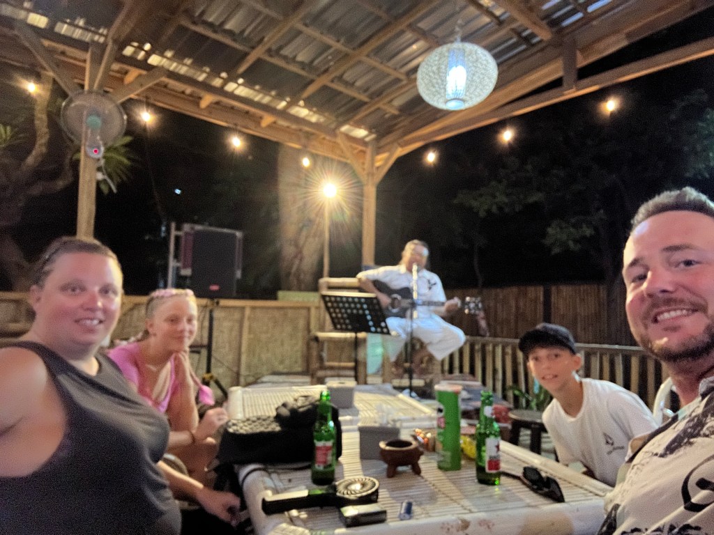 Aujourd’hui, quand on s’est réveillés, on avait un déjeuner déjà servit, juste pour nous. Après, on avait des massages. Ensuite, Lyv, mon père et moi on a décidé d’aller faire le tour de l’île. On est tous retourné au restaurant de pizza pour souper. On a aussi fini la soirée dans un bar bizarre.