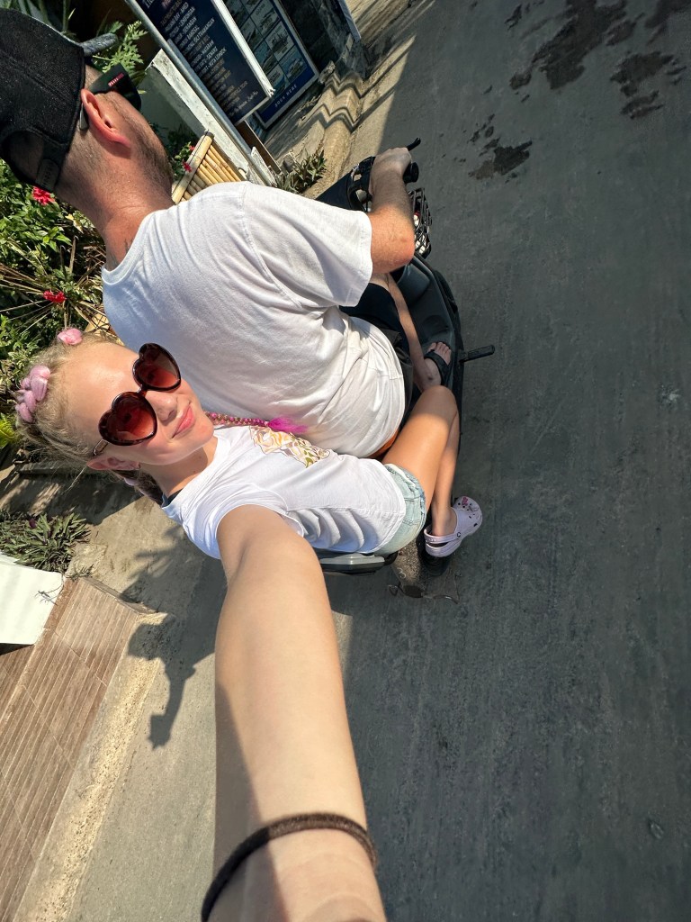 When we woke up, we went for a bike ride and found scooters to rent for my mom to come explore with us. While my mom got her hair braided we went for a ride and a drink. After that, we all went to a pretty cool beach club. We were only there to chill initially but we decided to stay for super. While the parents enjoyed the place, Lyv and me went for a ride on the scooters. That was very fun. For super I had ate some good fajitas.