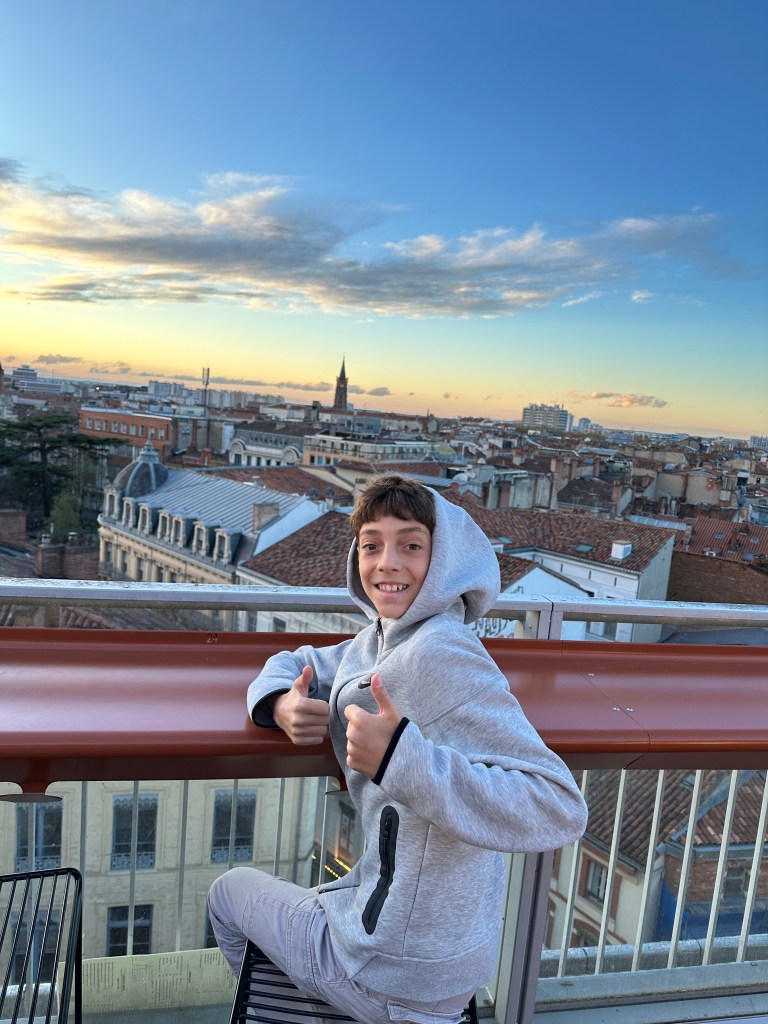 Aujourd’hui, on partait de notre maison bizarres pour aller à Toulouse. Le matin, on a tout packter nos affaires et on s’est rendu à notre auto. On a conduit pour 3 heures et on est arrêté pour dîner. On restait dans une hôtel pour une nuit. Pour souper, on est allé manger à la Biche sur le toit, drôle de nom de restaurant. C’était très haut et très beau. Il y avait des très belle vues. De retour à l’hôtel, on a écouté des émissions et on s’est tous couchés.