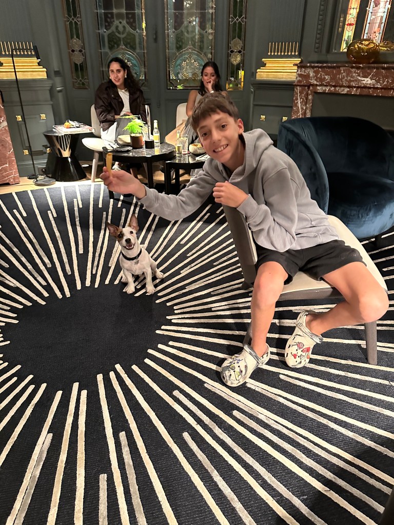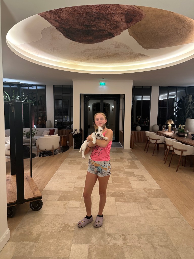 Aujourd’hui, on avait une autre route de 2 heures. En chemin, on est arrêté dans une halte routière. Ensuite, arrivé dans notre hotel, j’étais excité car c’était un gros château. Notre chambre était super belle. Nous étions déçus car il n’y avait pas de piscine. Plus tard, les parents sont allés faire une visite d’un vignoble et un souper. Lors de leur retour, ils nous ont fait venir au bar car il y avait des filles avec un mignon chiot. On est restait jouer avec lui jusqu’à minuit.