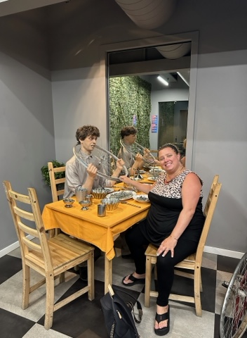 Today, we started the day by eating a nice lunch at a Pinxtos restaurant. Then, we took a long walk to then realize that Mel had forgotten her purse at the restaurant. So Carl went to go get it as fast as he could while the rest of us watched skate boarders do cool tricks. Luckily, we came back with the purse. Our walk let us to this museum where we had lots of fun as you will see on the pictures. The part I liked the most was the scary room. Then for supper we ate at this nice little restaurant called J’AIME and it was pretty good. Then we played cards and went to bed.