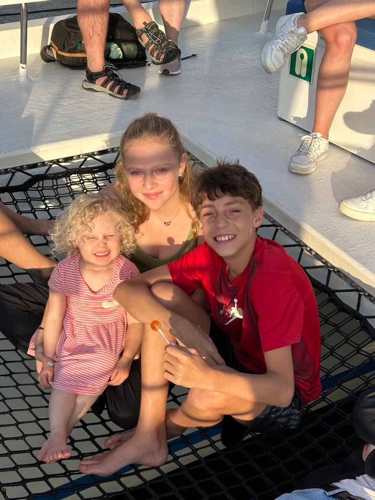 Aujourd’hui, je me suis réveillé et on a manger un gros déjeuner. On avait rien de planifier donc Lyvia et moi avons fait des fort pour Mila. Ensuite, on est sorti de la maison pour aller explorer et trouver un restaurant. Après le restaurant, nous nous sommes rendu a notre gros catamaran. On a pu y observer le soleil se coucher. C’était vraiment beau et on a pris des belles photos.