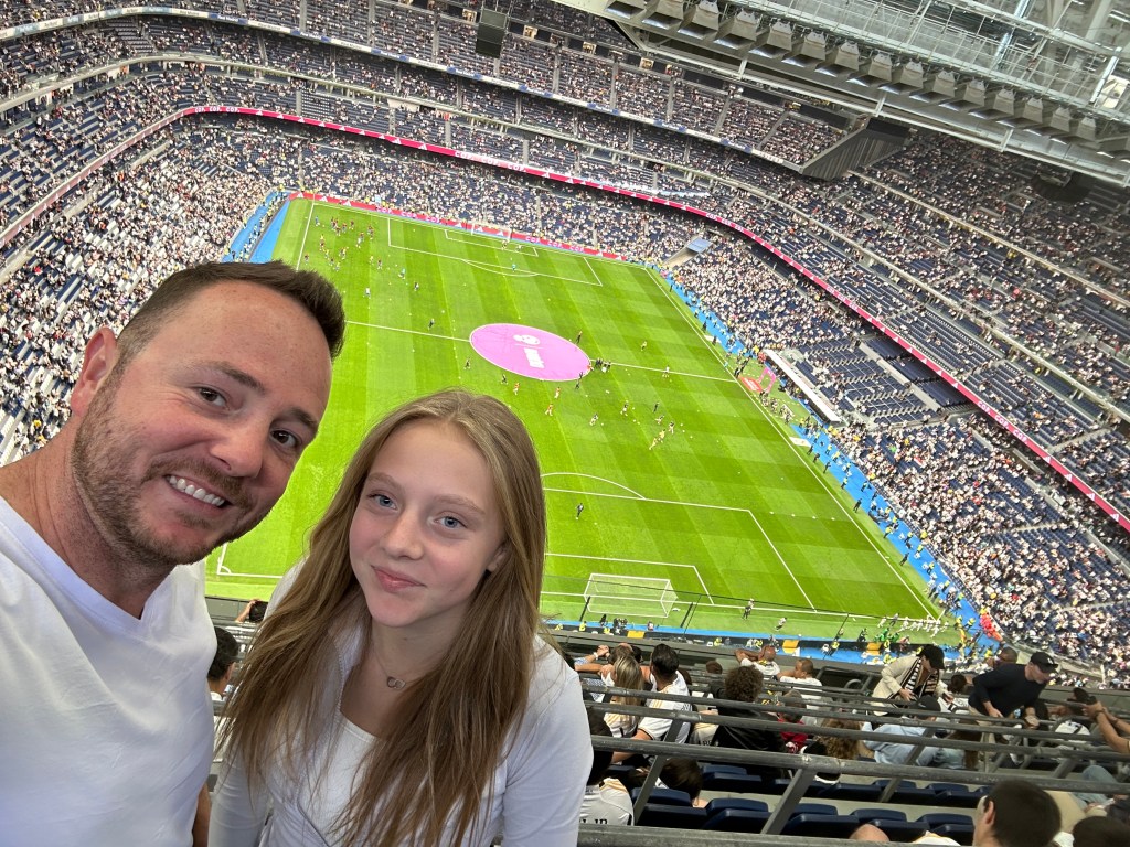 Today, we went to a Real Madrid soccer game. Before, we went to eat some really good pasta around the stadium. Then, we found our seats and watched the game. We were voting for Madrid and luckily, they won.